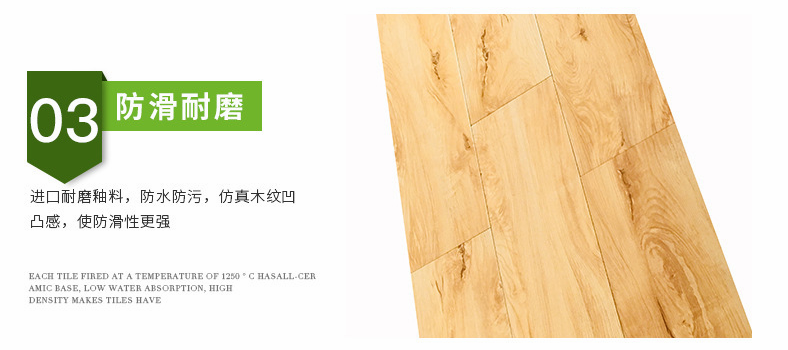 木紋磚具有逼真度高;本身具有阻燃,不腐蝕的特點,是綠色、環保型建材;產品使用壽命長,耐磨,無需像木制產品那樣周期性地打蠟保養等特征。